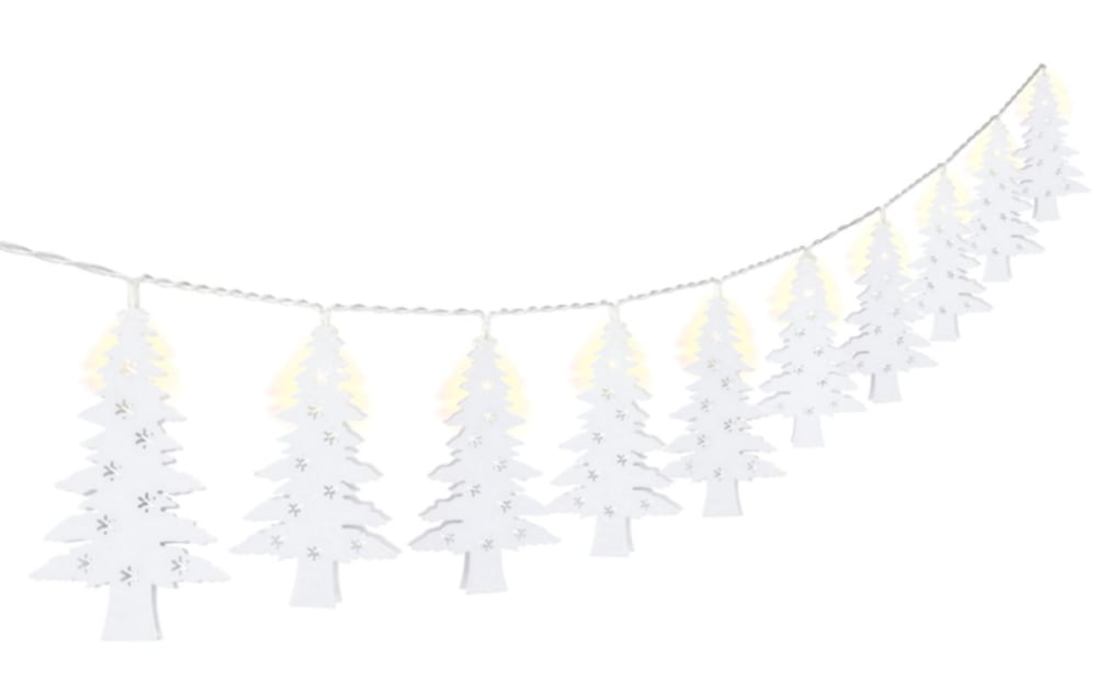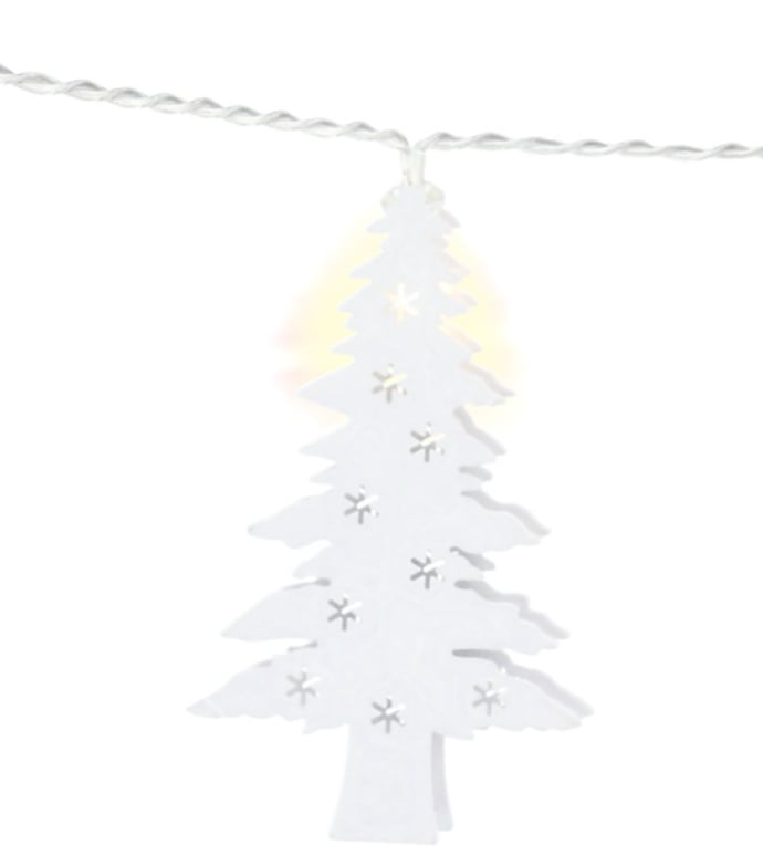 - Si adatta perfettamente a qualsiasi decorazione natalizia. La bella stringa di LED diffonde una piacevole luce calda e uno stato d animo festoso. Ogni luce è decorata con un alberello di Natale di metallo bianco