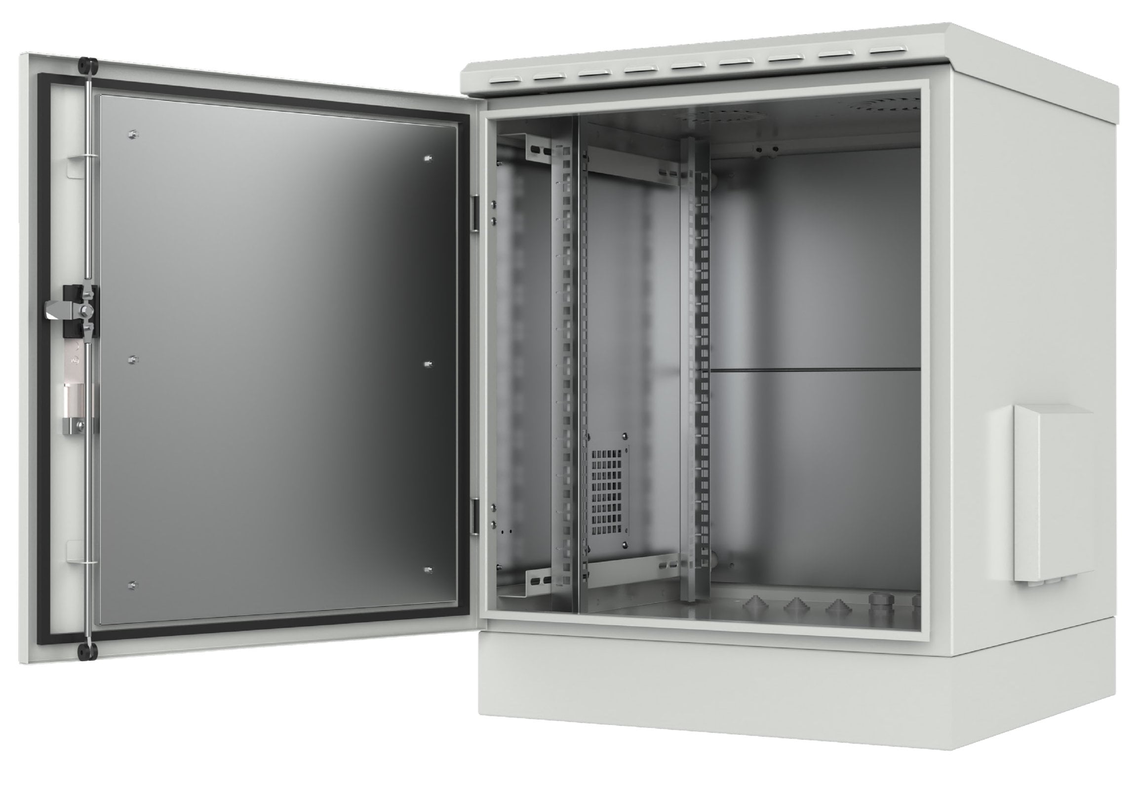 - Armadio rack 19 a pavimento da 12U con porta cieca singola in lamiera, indicato per installazione in condizioni estreme (ambienti polverosi, nebbie saline..): grazie alle guarnizioni poste sul tetto e sulla porta permette di proteggere le apparecchiature installate internamente da polvere e acqua