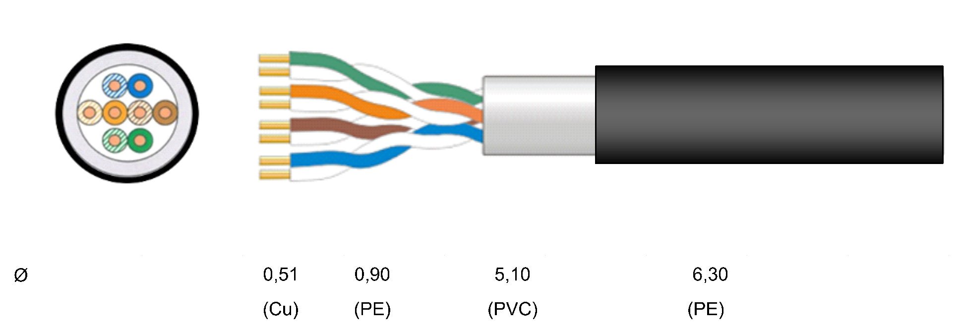 - 4 coppie con conduttore in rame rosso, diametro 0,51 mm