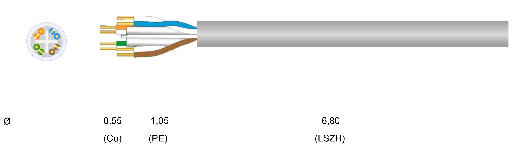 - Guaina esterna di colore grigio LSZH, diametro 6,8 mm