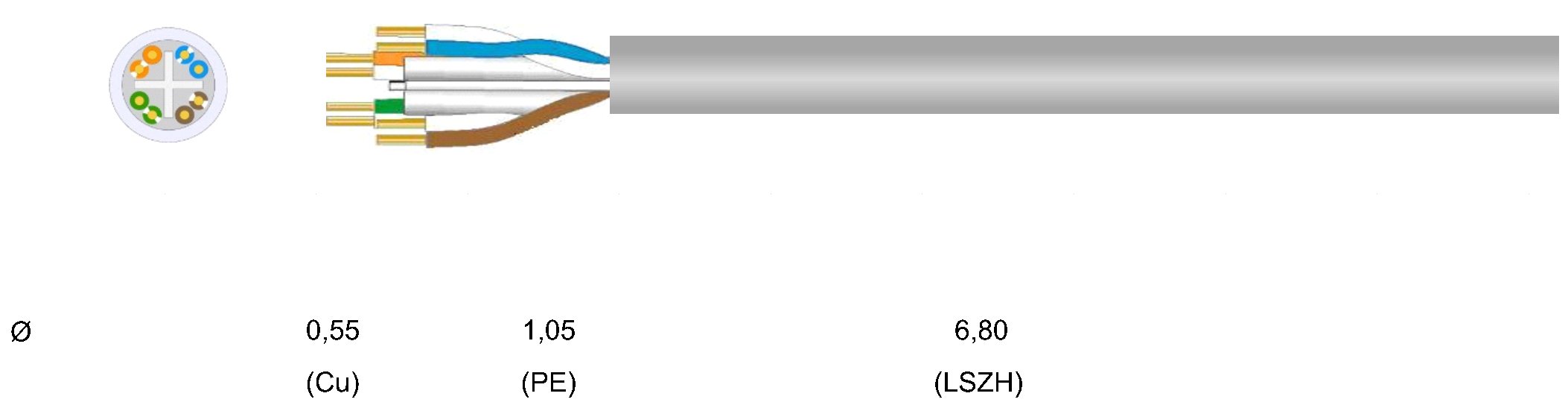 - Guaina esterna di colore grigio LSZH, diametro 6,8 mm