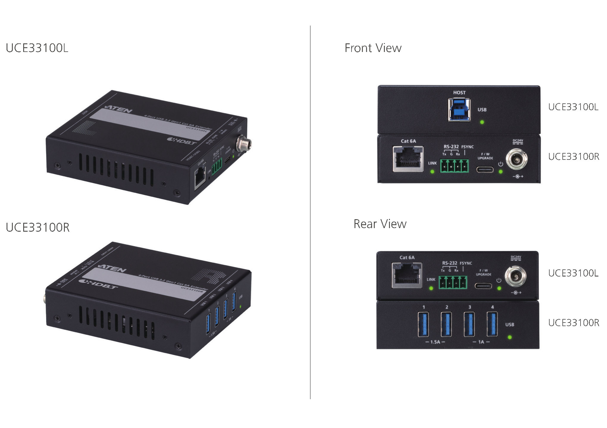 - L estensore USB 3.2 CAT 6A a 4 porte UCE33100 è un dispositivo a due unità che può essere utilizzato come trasmettitore e ricevitore
