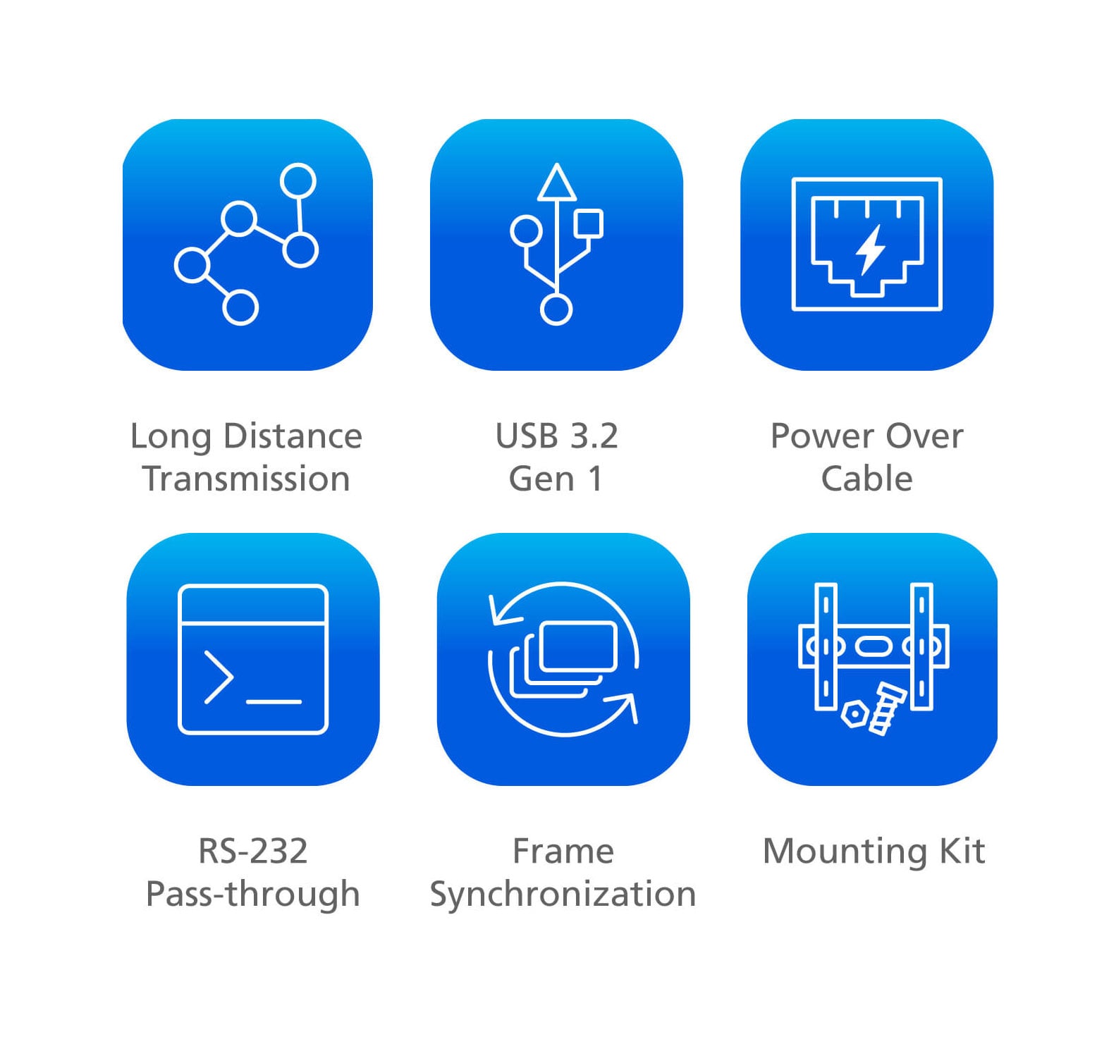 - Può estendere la distanza di trasmissione USB 3.2 fino a 100 metri dal computer mediante un cavo Cat 6A Ethernet