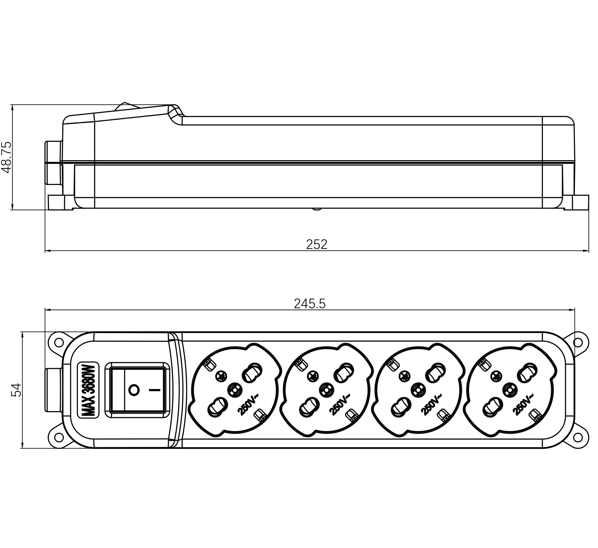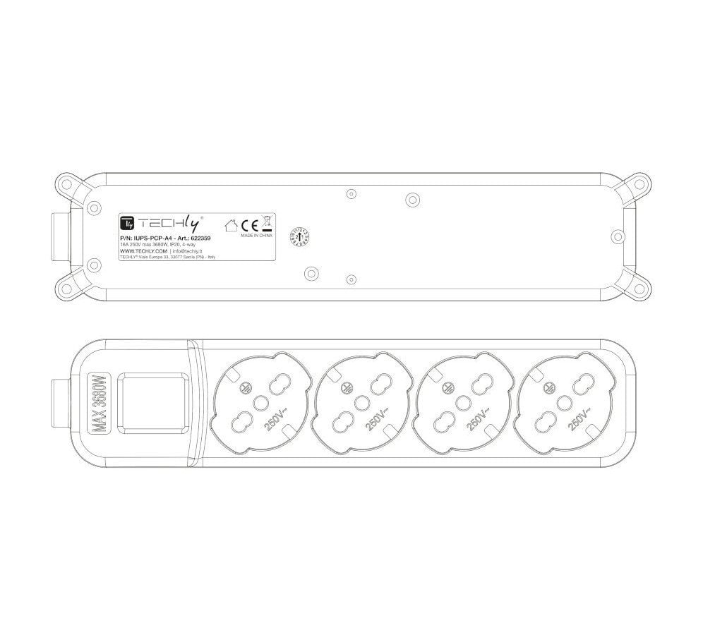 - Multipresa 4 posizioni 10/16A con spina 16A angolata IUPS-PCP-A4