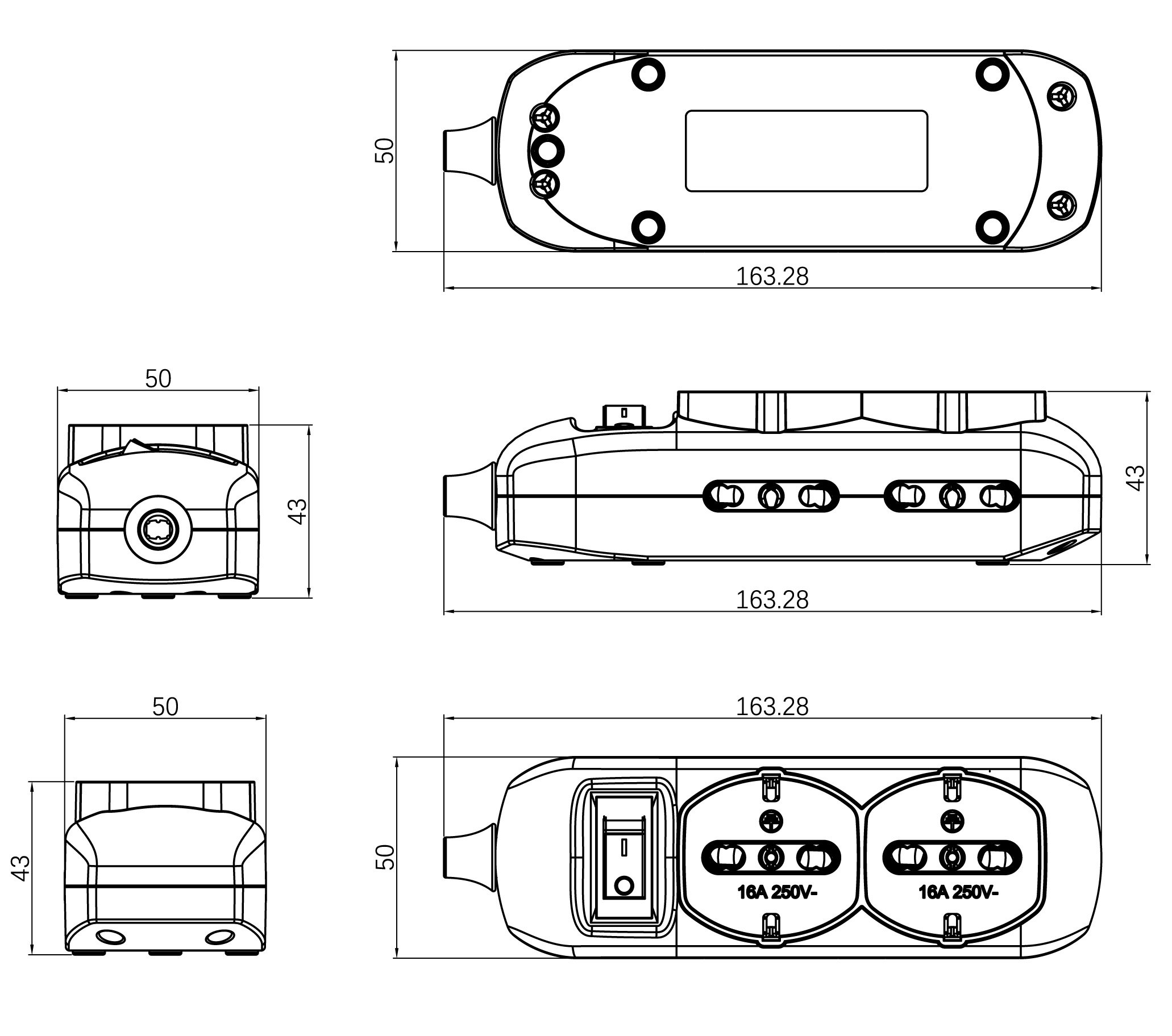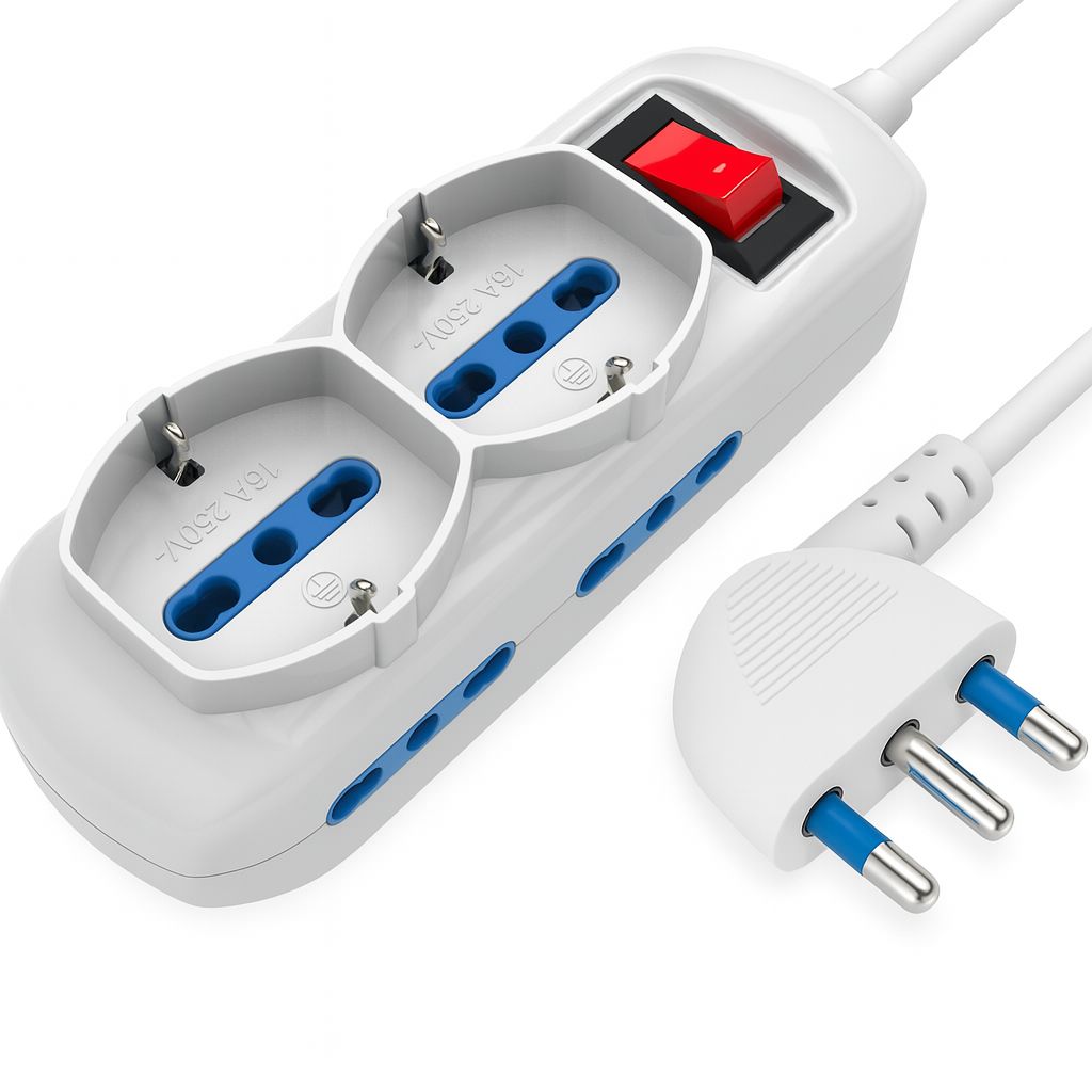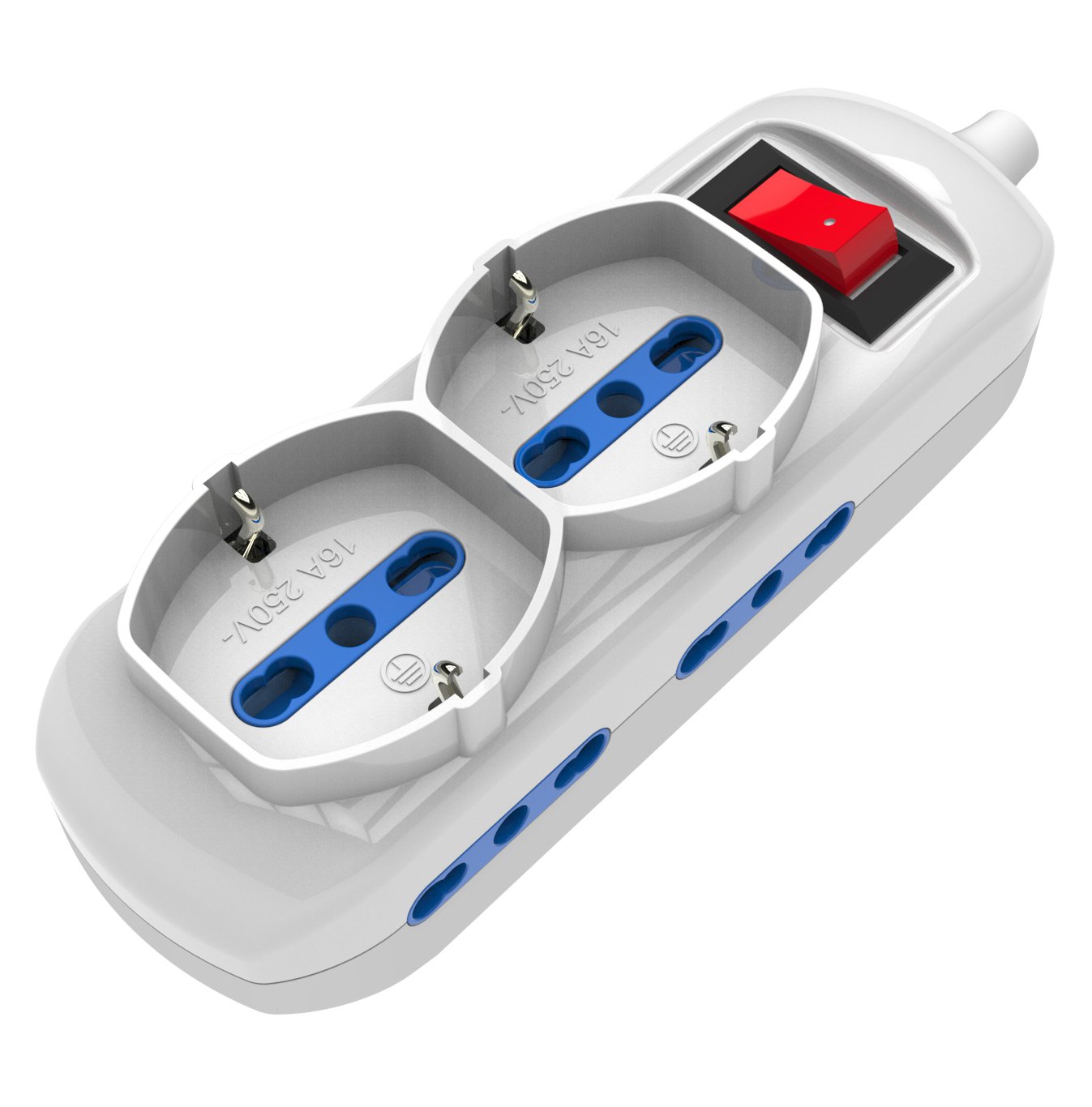 - Presa multipla a 6 uscite per spine italiane e Schuko
