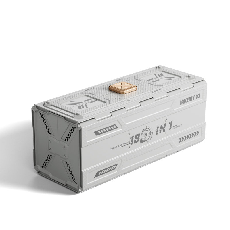- Design unico dalle fattezze di un mini container, con fori per ventilazione ad entrambi le estremità e leva da ruotare per l apertura