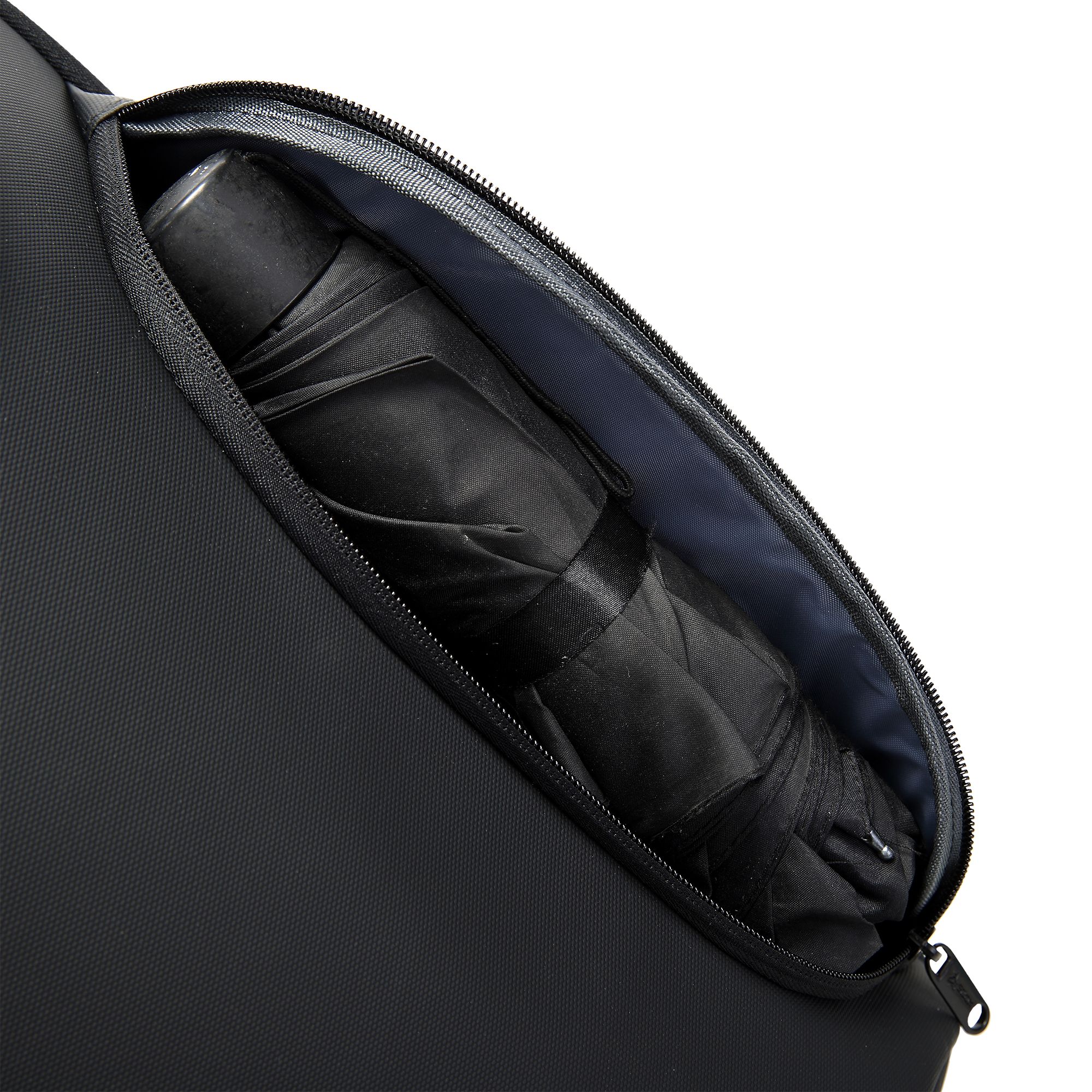 - Numero di scomparti: 1 scomparto principale con cerniera, 1 scomparto per ombrelli chiuso, 2 scomparti anteriori chiusi, tasca separata per laptop e scomparti aggiuntivi per piccoli oggetti